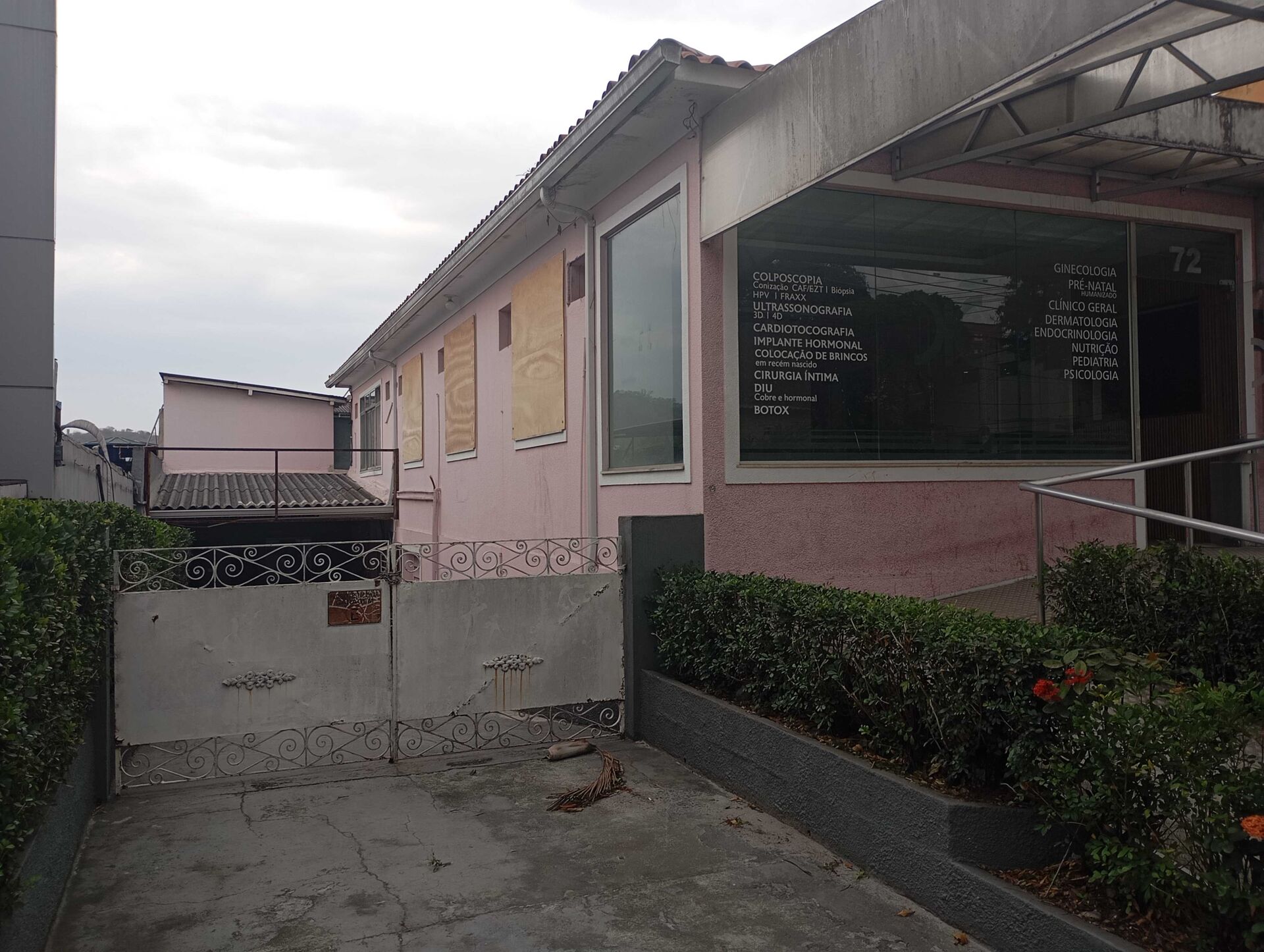na entrada lateral com 4 salas, 4 banheiros, Recepção, 2 vagas de garagem, área de serviço, copa, vestiário.